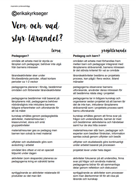 Fast även om det är en påverkan i en viss riktning så är det inte att påverka mot ett givet mål utan det handlar om exakt det som Martina lyfter kring att projekten ska handla om det som är viktigt för barnen. Vi som pedagoger ska bejaka barnens utforskande och lekfullhet. Ebba Thorell (2010) lyfts i föreläsning när det pratas kring utbildning av barn (en bok som jag genast ska lägga en beställning på hos Läromedia!). ”Att utveckla kontexter tillsammans som kan bli intressanta för barnen”